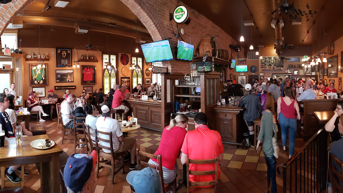 Located in the heart of downtown Toledo’s Warehouse District, The Blarney Irish Pub is a lively, authentic Irish-style pub known for its energetic atmosphere, live entertainment, and classic pub fare. Inspired by traditional pubs in Ireland, the space features warm wood interiors and décor imported from Ireland to create a genuine, old-world feel.