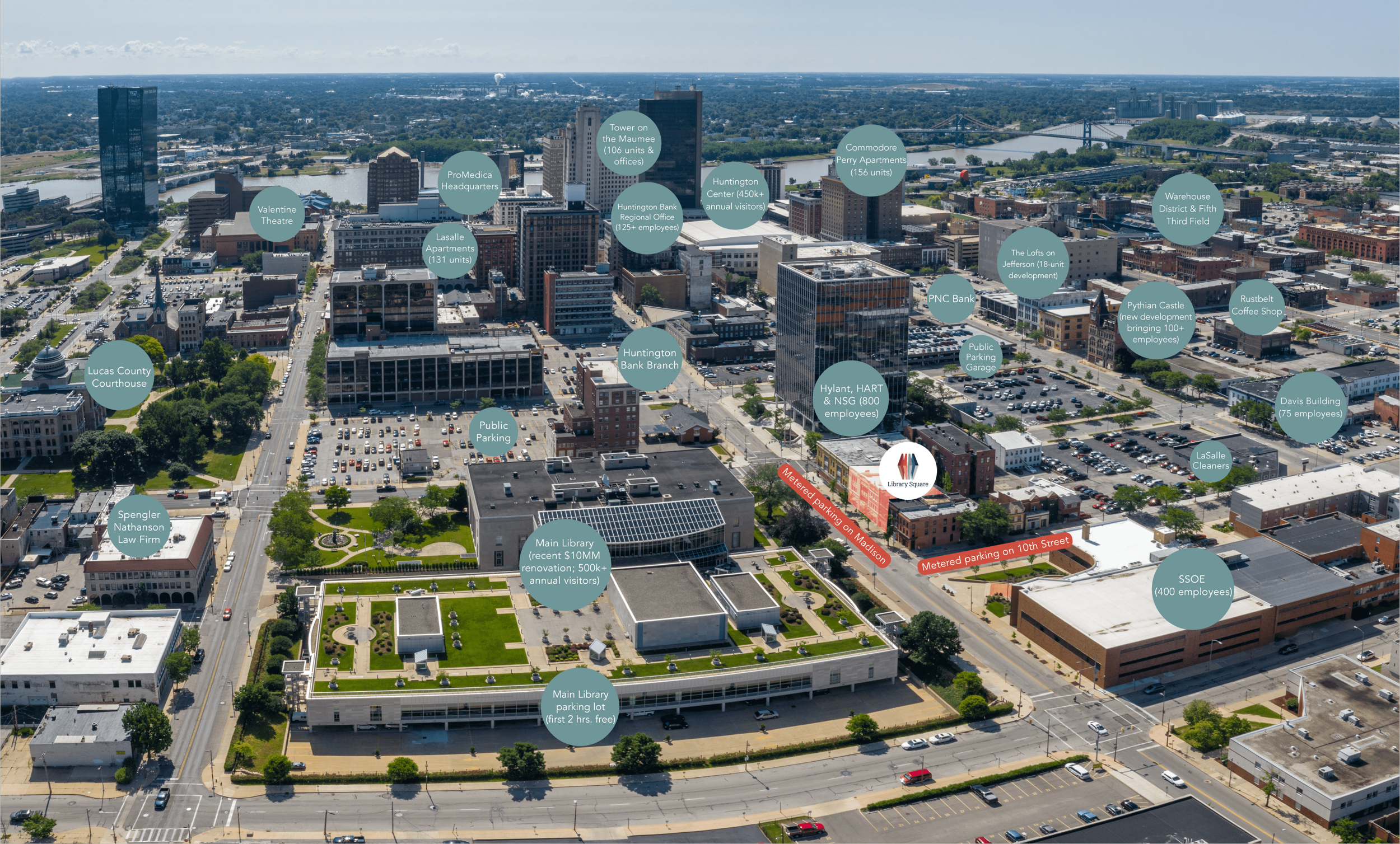 Conveniently located near the Huntington Center, Glass City Convention Center, Fifth Third Field, hundreds of businesses and the beautiful Promenade Park and downtown riverfront.